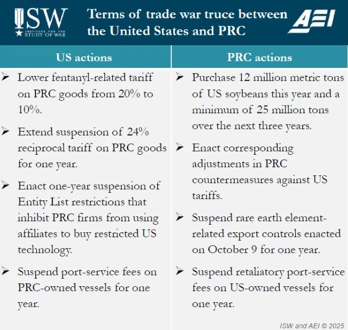 Great summary Marc Liebman https://www.marcliebman.com https://www.facebook.com/marcliebmanauthor/ https://www.youtube.com/channel/UC_sDoFQM5wupNaCeGIvKL1g From: ISW Publications <publications@understandingwar.org> Reply-To: "publications@understandingwar.org" <publications@understandingwar.org> Date: Wednesday, November 5, 2025 at 8:11 AM To: Marc Liebman <marc@marcliebman.com> Subject: Intel Brief: October 2025 Newsletter Monthly Research Update from ISW [https://7et4umoab.cc.rs6.net/on.jsp?ca=e787bc3f-6e7c-40a2-b9ff-4ebe28240f84&...] [https://files.constantcontact.com/c9ccf499301/d52445dc-0e5d-4239-a10c-175a18...] October 2025 Dear ISW readers, Each month, the ISW editorial team distills our research teams’ reports and assessments of the war in Ukraine, the Chinese Communist Party’s paths to controlling Taiwan and relevant cross–Taiwan Strait developments, and the security challenges in the Middle East to provide you with an understanding in brief of the past month’s happenings across our research portfolios. October's Highlights On October 13, ISW Russia Research Fellow Kateryna Stepanenko and Russia Team & Geospatial Team Lead George Barros wrote a special warning report<https://7et4umoab.cc.rs6.net/tn.jsp?f=001rFIASBvMYelyBp9qQw1AfdVonRAtnYRBDs29qY_empTSMElj45G-ydiGiJqu6DwFGGQrU8iDFGDAwDtqMqOgHetN9ZEKAbyy7vu3MTyitoCBl7CJZthPjcaT8WbPB6tXt-0zy3KjxnmmdL2Sy1dHvcZfmiAs2rkS&c=QaaSHCVtogOIayvHMndC3aUQTbOMrzcgybYfGv_aIV1RkRSTSbmlew==&ch=BahX3CSNTkDZgYADF08Xi1T3fA6pFAqhOcu65Xn0NjQb9vEtXEIjGA==> on the Kremlin preparing to mobilize reservists in Ukraine, indicating “a major inflection in Russia’s force generation strategy.” ISW Director of the Defense of Europe Project Mason Clark published a long-form report<https://7et4umoab.cc.rs6.net/tn.jsp?f=001rFIASBvMYelyBp9qQw1AfdVonRAtnYRBDs29qY_empTSMElj45G-yWv0lk-s986nfqn2NhtbRu9K_5YZkXC1SZ4Z4kkAHLecr8zufF4OrnkC0NG4krfVWvOYz48H49sik83xb8V3n7g5nyav2oFE5UsR4ILxq93CesY3DsBrHEo=&c=QaaSHCVtogOIayvHMndC3aUQTbOMrzcgybYfGv_aIV1RkRSTSbmlew==&ch=BahX3CSNTkDZgYADF08Xi1T3fA6pFAqhOcu65Xn0NjQb9vEtXEIjGA==> on October 27, providing an in-depth look at Russian conventional military capabilities and military reconstitution, as well as implications for Western analysts and policymakers. In the Media “Russia has always been protected by the tyranny of distance,” [George] Barros said, “but with tomahawks and precise intelligence from the West, you have the payload plus the distance to take out big targets that Ukrainian systems just haven’t been able to hit.” — NY Post<https://7et4umoab.cc.rs6.net/tn.jsp?f=001rFIASBvMYelyBp9qQw1AfdVonRAtnYRBDs29qY_empTSMElj45G-yb0hbuVYLzsiaO_IwVie5uw9mpbwBy26EETWAzAtQd9RfKmUFkfu7-tHV-dPJqJFQaa7DatvKEYbFhlQ_VZxWnhxXuKLfGr861ogQ0vTFq0avfQ4sQUc1xbzmb_aYJpO0knp525ptDIbaYInUAYyeRYLrTdxXsmBAlqUFmi3Vsf7y7ObIQEEp4mpozsoPNYcYY14QYp1g04c95BL1wV4LYUCJcMBOBguV-6eEromjS7b0Ac854ZiYTpN7j-1WSfJj80GPQoJ9LlZaUviDe4Yj_gc3z21Iu23Rg==&c=QaaSHCVtogOIayvHMndC3aUQTbOMrzcgybYfGv_aIV1RkRSTSbmlew==&ch=BahX3CSNTkDZgYADF08Xi1T3fA6pFAqhOcu65Xn0NjQb9vEtXEIjGA==>, October 2 Chinese vessels are transmitting fake signals in Taiwan’s waters as a form of cognitive warfare, testing Taiwan’s responses to various types of incursions. — October 6, China & Taiwan Update, Taipei Times<https://7et4umoab.cc.rs6.net/tn.jsp?f=001rFIASBvMYelyBp9qQw1AfdVonRAtnYRBDs29qY_empTSMElj45G-yb0hbuVYLzsi8iQIqWxSV9QCbF7fi6qnhTs1e4hN0HatyMDi3tSkXGzjxiDtJmNHX8QfYhcaTz54nskGiYVdCciU2Emk8Z6M5dMoFSOZ1YMsR31xChKSj6TyyqOrQJ60Wa9gvE58uazcoHKaRJiaAOiyFpZo5dUGoagk9VoBE0p1Wz5WnJrnJ0UkalZ9csjyIxhIMD_80iFub7Uugc_n3cMgajrIIS6vjw==&c=QaaSHCVtogOIayvHMndC3aUQTbOMrzcgybYfGv_aIV1RkRSTSbmlew==&ch=BahX3CSNTkDZgYADF08Xi1T3fA6pFAqhOcu65Xn0NjQb9vEtXEIjGA==> Russia has failed to conquer a smaller and poorer adversary despite nearly four years of campaigning. Its military is severely underperforming, and Ukraine’s defenses have slowed Russian’s rate of advance to a literal footpace. Russia has seized 0.6% of Ukraine this year. — BoD Chairman Gen. Jack Keane (US Army, Ret.) NY Post<https://7et4umoab.cc.rs6.net/tn.jsp?f=001rFIASBvMYelyBp9qQw1AfdVonRAtnYRBDs29qY_empTSMElj45G-yb0hbuVYLzsigbafEs6OXqVBlC5DPOFSZv9H_F8H5Yk3BkUfg_dkabh85bk5CC-1g-9jK3ZRhMljMh8WlW9_9xcStUdT7o377oqS-wNahI16BRJJuLxC7d6FRMqfHjXBLZxHXwz73N4vbSZxb64yR4CTK5NBR7gN2UDf6t9j0U5wA8UoRMOiICBXGBAY10y2iQUjy1MSPwQK&c=QaaSHCVtogOIayvHMndC3aUQTbOMrzcgybYfGv_aIV1RkRSTSbmlew==&ch=BahX3CSNTkDZgYADF08Xi1T3fA6pFAqhOcu65Xn0NjQb9vEtXEIjGA==>, October 24 [https://files.constantcontact.com/c9ccf499301/e1576812-bc50-47a5-ba57-1efb9904bd69.png?rdr=true]<https://7et4umoab.cc.rs6.net/tn.jsp?f=001rFIASBvMYelyBp9qQw1AfdVonRAtnYRBDs29qY_empTSMElj45G-yb0hbuVYLzsiCXfC6-DxAMMJ0bRLLz2kji6ONwYf-Z_TI-kFbxjxhLfQQ6jOuWq12bTwtn7WuxCzx5QY9TpRZMlygqD0Z0KCK0aGM1-9uvoXOERj6lR85OEYjV4sM_MVq4t22NWXHVgJlTOG7_8dlv7p12B7qPZFE5BuehfzhF_oEDJ-HX18KvNw9plPY-VSYpz4Ls-rfWLpLHO-690PA09ZSC2cKg9sZeHeNAjmzeYnaKXfWU1mVmo=&c=QaaSHCVtogOIayvHMndC3aUQTbOMrzcgybYfGv_aIV1RkRSTSbmlew==&ch=BahX3CSNTkDZgYADF08Xi1T3fA6pFAqhOcu65Xn0NjQb9vEtXEIjGA==> [https://files.constantcontact.com/c9ccf499301/d6a9c933-f03c-4778-b15c-4be0890f03aa.png?rdr=true]<https://7et4umoab.cc.rs6.net/tn.jsp?f=001rFIASBvMYelyBp9qQw1AfdVonRAtnYRBDs29qY_empTSMElj45G-yb0hbuVYLzsizx-1BODbys3eQJrqpDK-91_vzxQuxNHlMPjTgp8T4JfJ7w1qbwLgps0fWy_2RP41ht4ZC4bKhCajP8SVU0nkDGcF6HwMbU8l1zvAfGWkcMyU8Daa6RkJRq3w0FewQSx172-eb60F3vgJDxTihxSPcETUdpdbRkvIRcRLCqVkLzxFFLH1HxSHc0C4MyNU7o7tSNFT493t3bQ=&c=QaaSHCVtogOIayvHMndC3aUQTbOMrzcgybYfGv_aIV1RkRSTSbmlew==&ch=BahX3CSNTkDZgYADF08Xi1T3fA6pFAqhOcu65Xn0NjQb9vEtXEIjGA==> Ukraine & NATO<https://7et4umoab.cc.rs6.net/tn.jsp?f=001rFIASBvMYelyBp9qQw1AfdVonRAtnYRBDs29qY_empTSMElj45G-yU055mR9J0k5Oeh-doroLdPWabi4rJtiUV-VWffXJMvWzPyNldm4Pg9kFMy1TV5TEgbgKEfp1eUpKjvt830tPwfuqX30TQW_P11KaJdcfZplX0AsGu5rL3nTUa7IjCHiZU5Yq3P71VrQTtPQD6yQoQMxY6J3kA0d0Q==&c=QaaSHCVtogOIayvHMndC3aUQTbOMrzcgybYfGv_aIV1RkRSTSbmlew==&ch=BahX3CSNTkDZgYADF08Xi1T3fA6pFAqhOcu65Xn0NjQb9vEtXEIjGA==> Note: The cut-off date f
